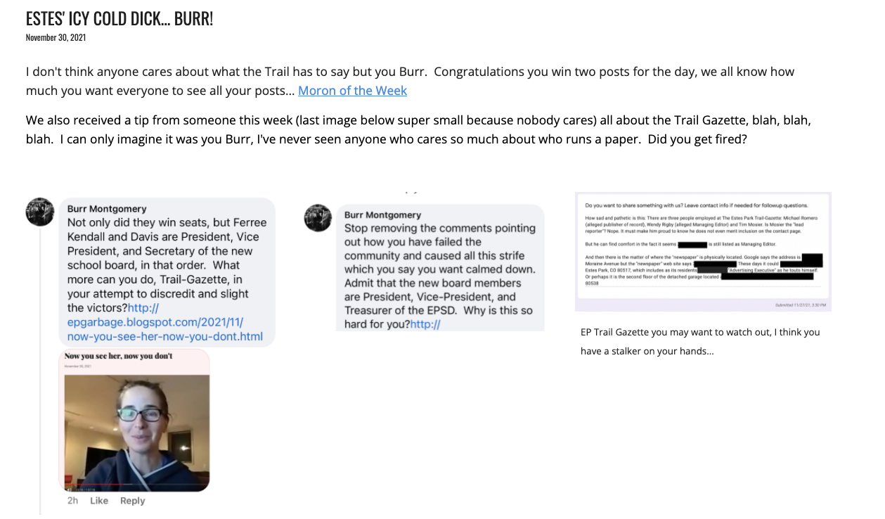 Estestruth.org was a parody response to Estes Truth on FB. The "winner" of that battle was Estes Truth on FB, regardless of whose side you were on, because it accurately read the tea leaves, and predicted and promoted the exact outcome of the school board election. Having said that, the "have a tip, good for you" dismissive non sequitur of Estestruth.org was particularly mirthsome and spot on, because neither Estes Park nor Estestruth.org really care(d) about news tips. By definition, they were both too solipsistic to worry about the mess in other people's pants, because they were (and are) too fixated on cataloguing and displaying the mess in their own.